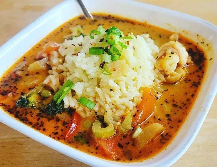 Thai kókuszos vörös curry leves garnélával