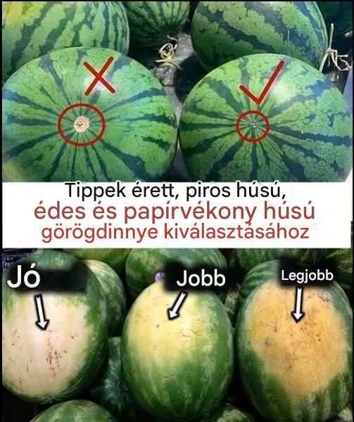 Tippek érett, piros húsú, édes és papírvékony húsú görögdinnye kiválasztásához
