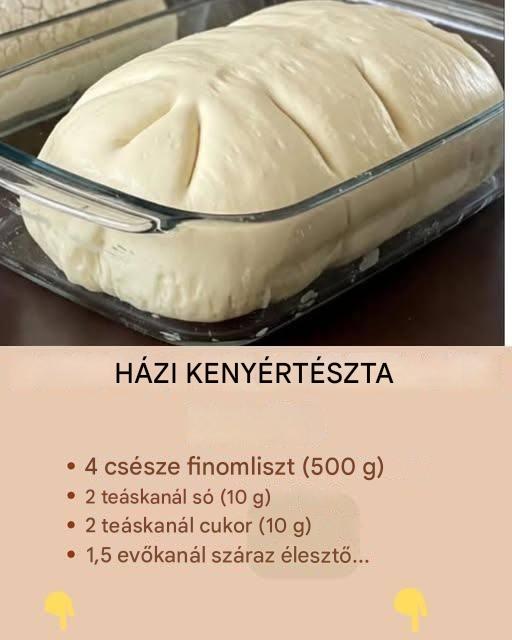 Egyszerű recept egy kis titokkal, hogy felhőként habos legyen! Hozzávalók: 4 csésze (500 g) univerzális liszt 2 teáskanál (10 g) só 2 teáskanál (10 g) cukor 1 ½ evőkanál (15 g) száraz élesztő (vagy 2 evőkanál/30 g friss élesztő) 1 ½ csésze (350 ml) meleg víz (kb. 37°C) 1 evőkanál növényi olaj (opcionális, a kenéshez)Utasítás: … Read more