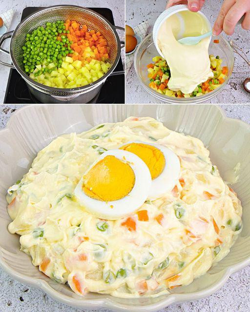 Hozzávalók: 2 közepes burgonya 🥔 2 sárgarépa 🥕 100 g zöldborsó (friss vagy fagyasztott) 🌱 2 tojás 🥚 200 g majonéz 🥄 Só és bors ízlés szerint 🧂 💡 Elkészítés módja: Zöldségek főzése 🍲:Hámozd meg a burgonyát és a répát, majd vágd őket apró kockákra.Forrald fel sós vízben a burgonyát, répát és a zöldborsót körülbelül … Read more